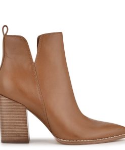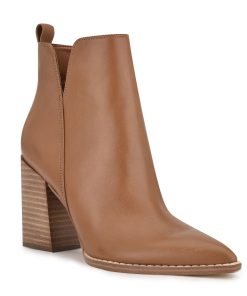 Nine West Women’s Shoes Birds Block Heel Booties | Caramel Leather | Caramel Leather | Women’s Shoes